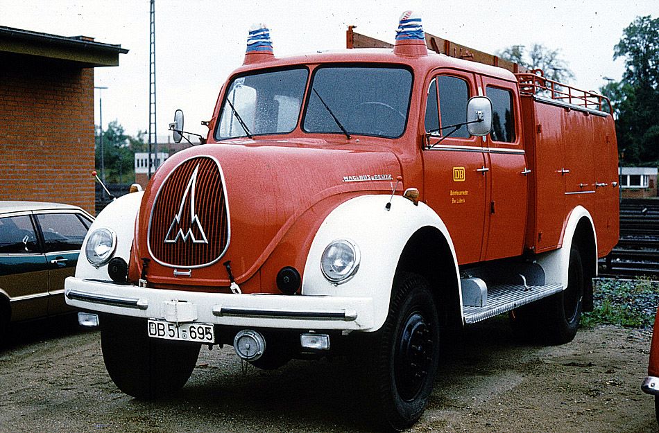 Magirus-Deutz Löschfahrzeug der Bahnfeuerwehr Lübeck in den Achtzigern.