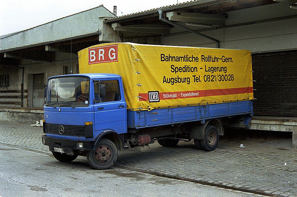 Mercedes der Bahnamtlichen Rollfuhr Gem. (BRG) Augsburg in den Achtzigern in Augsburg.