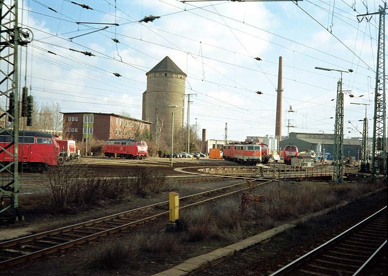 Blick auf das Bahnbetriebswerk Bremen Hbf am 19.02.1997