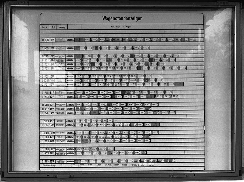 Wagenstandanzeiger auf Gleis 2 im Bahnhof Remagen am 25.12.1979