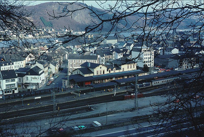 Blick auf den Bahnhof Remagen am 29.01.1983