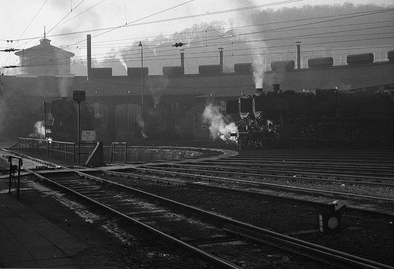 Dampflokomotiven im Bahnbetriebswerk Siegen am 08.01.1966