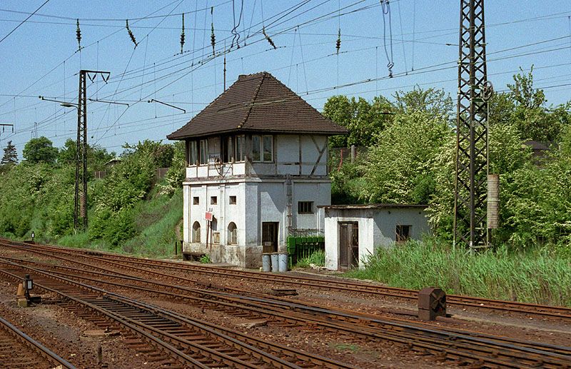 Blick auf das Stellwerk in Weimar am 11.05.1993