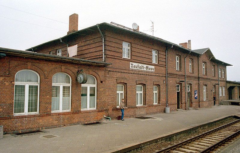 Blick auf das Empfangsgebäude des Bahnhofs Neustadt-Glewe