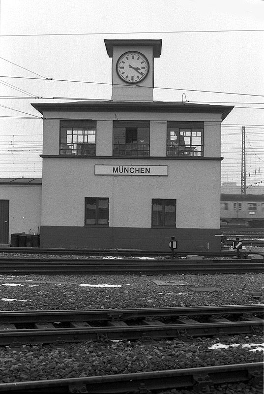 An der Einfahrt zum Bw München Hbf stand am 23.02.1984 dieses kleine Stellwerk,
