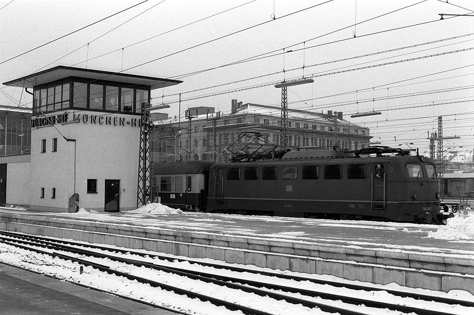 Auf einem Bahnsteig des Münchner Hbf stand dieses Stellwerk, hinter dem 140 016