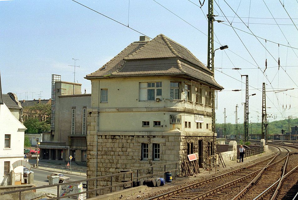 Blick auf das Stellwerk Weißenfels-West am 11.05.1993