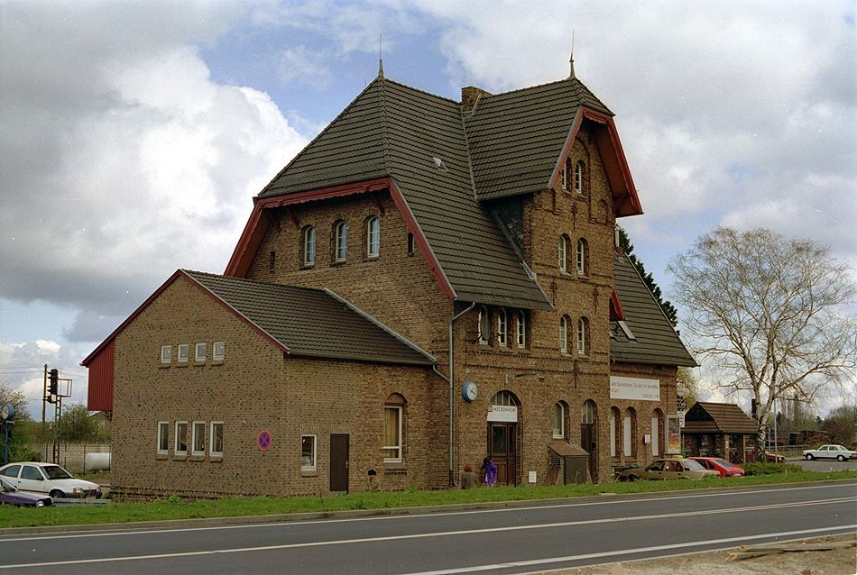 Blick auf das Empfangsgebäude Meckenheim am 10.04.1994