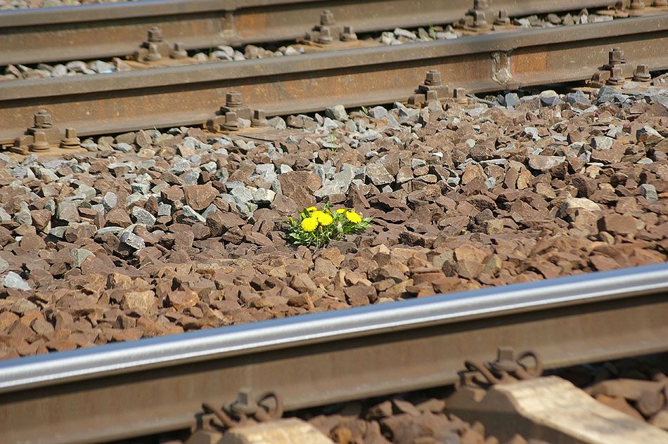 Ein zartes Blümchen verschönert im Jahre 2006 das Schotterfeld im Bahnbetriebswerk Mainz-Bischofsheim