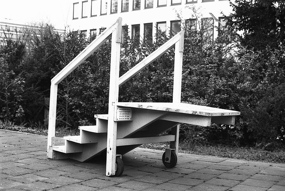 Treppe für den Regierungs-Salonwagen am Sonderbahnsteig in Bonn Hbf am 04.04.1981