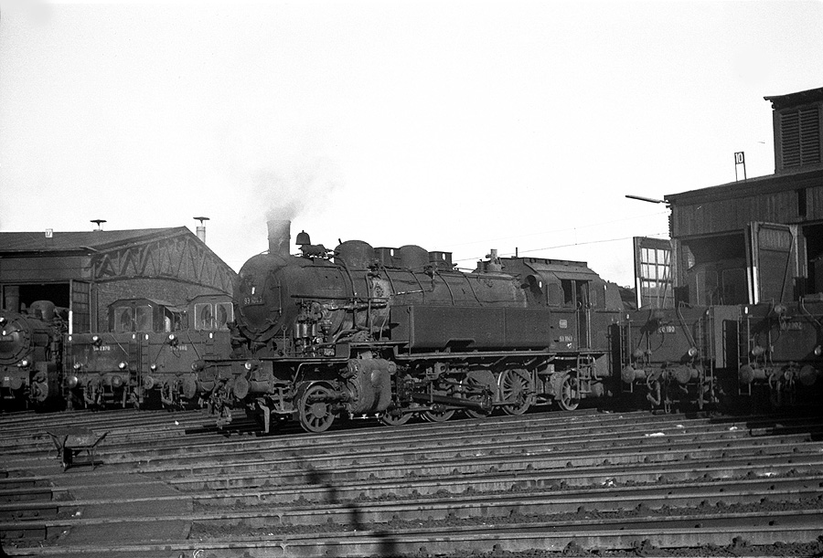 Im überfüllten Bw Stolberg ruht sich am 01.05.1966 93 1043 aus