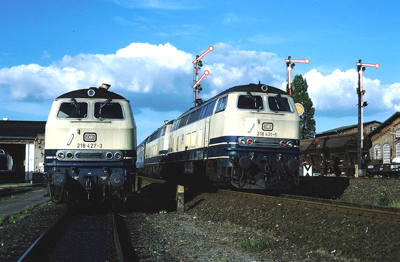Am 07.08.1988 trafen sich 218 427 und 218 431 am Bw Lübeck