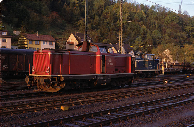 Am 29.10.1990 wird die Lok 213 339 in Remagen besonders schön von der Sonne verwöhnt. Ja, es war ein wunderschöner "Goldender Oktober" !