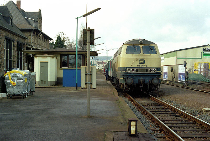 218 149 am 16.01.1993 mit dem Nahverkehrszug nach Remagen in Bad Neuenahr