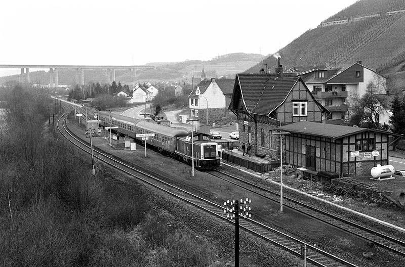 212 234 mit einem Wendezug nach Kreuzberg/Ahr am 31.12.1989 im Bf. Heimersheim/Ahr.