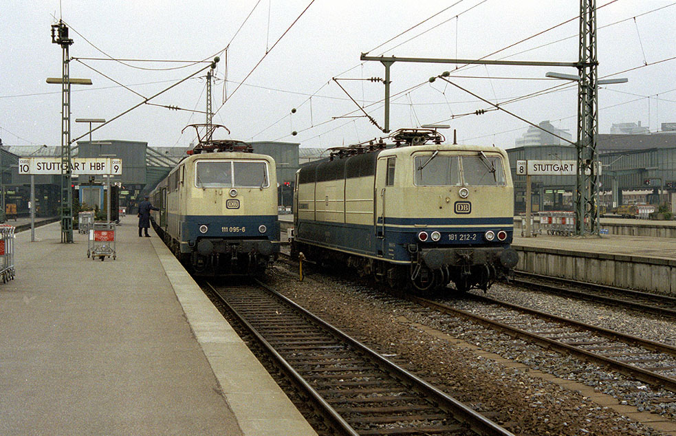111 095 und 181 212 in Stuttgart Hbf am 29.03.1990