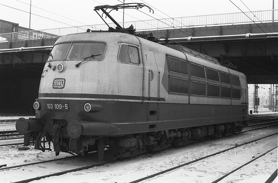 103 109 mit ihrem farblichen Akzent am Lüfterband am 22.01.1987 an der Donnersberger Brücke