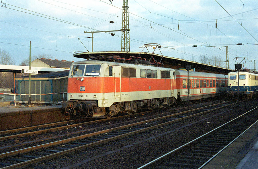 Die Köln-Deutzer Abendsonne des 01.12.1988 lässt die 111 140 strahlen