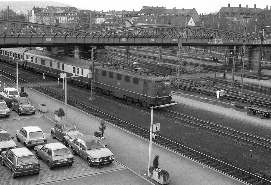 141 133 erreicht mit ihrem Zug am 29.03.1988 Freiburg Hbf