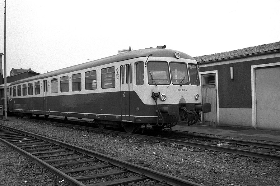 Der antriebslose 815 801 wartet am 02.10.1983 im Bw Limburg auf seinen nächsten Einsatz