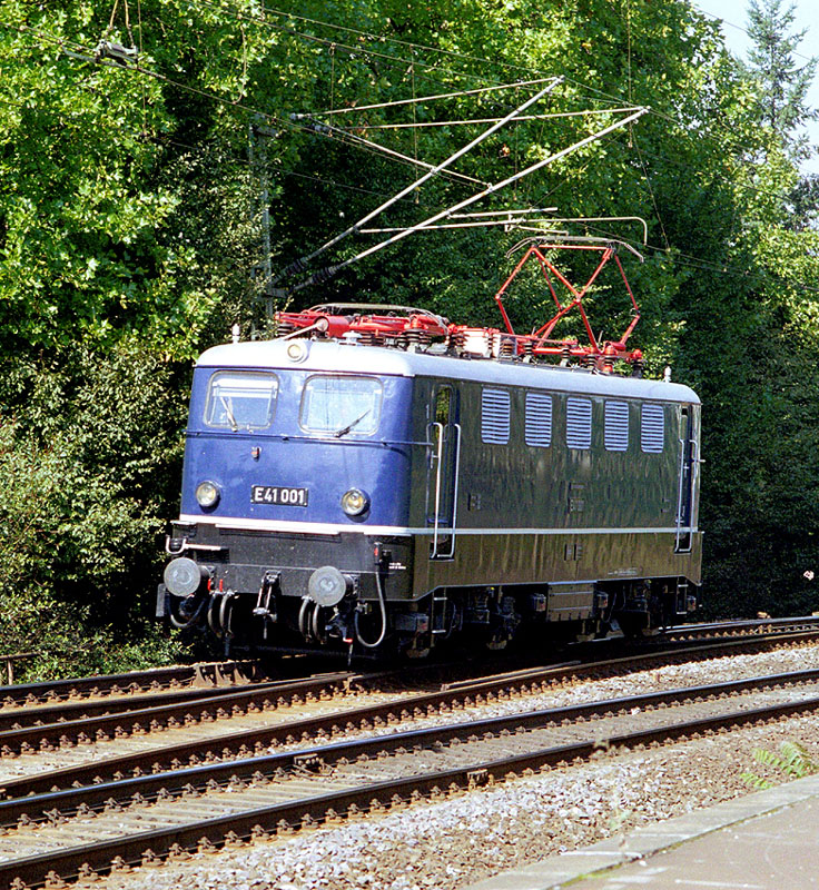 Die heutige Museumslok E41 001 durchfährt am 15.09.2003 Bf. Bonn-Beuel