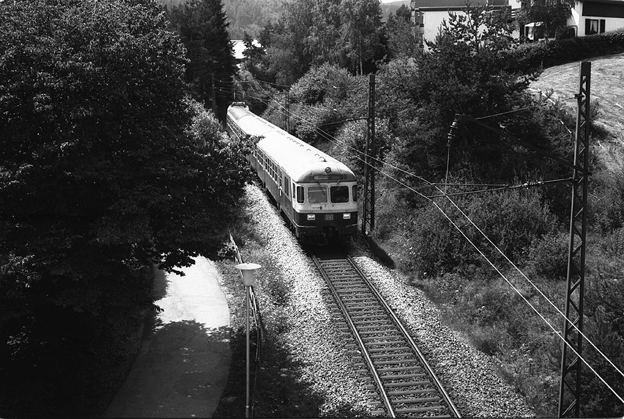Auf der Dreiseenbahn nahe Schluchsee begegnet mir am 29.07.1987 diese Wendezuggarnitur