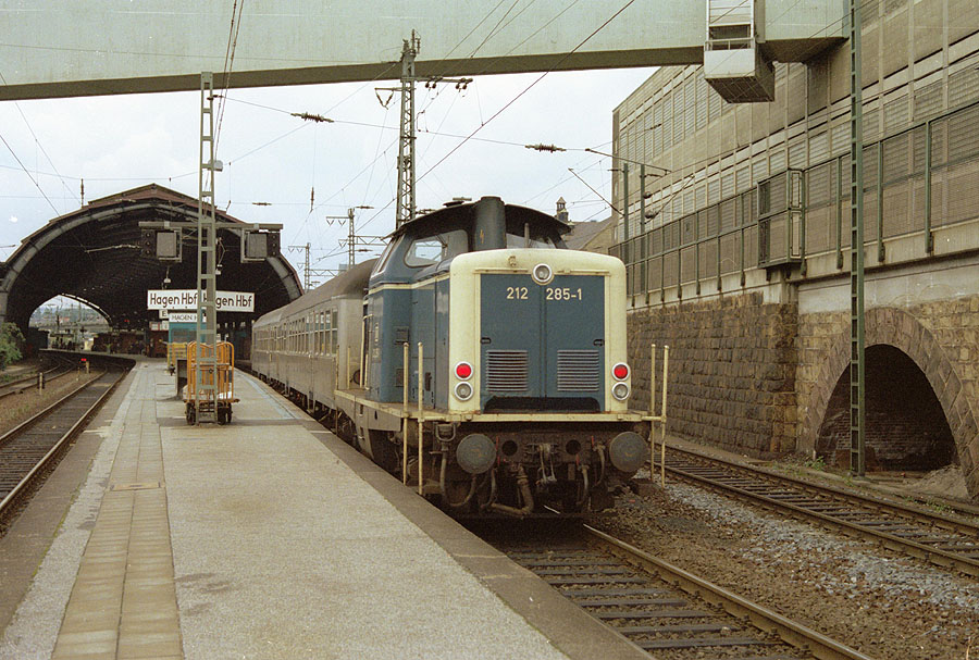 212 285 stellt am 15.09.1988 ihren Wendezug im Hagener Hbf bereit