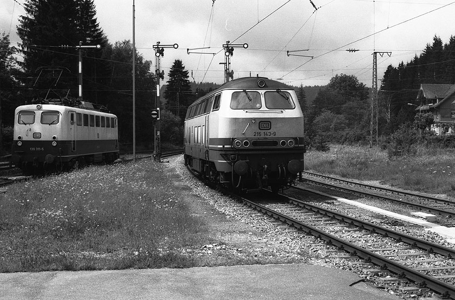 215 143 und 139 311 treffen am 05.08.1987 in Titisee aufeinander