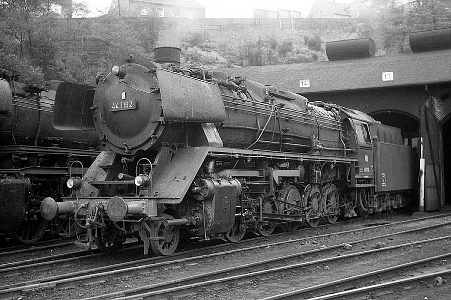 Stand 13 des Bw Hagen Gbf beherbergt am 22.10.1967 die schwere Güterzuglok 44 1192