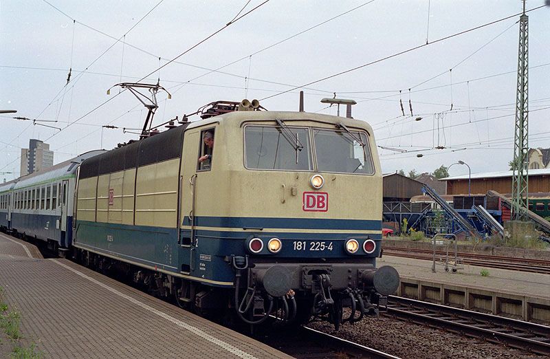 181 225 mit D 1273 nach Port Bou in Bonn-Beuel am 30.08.1996.