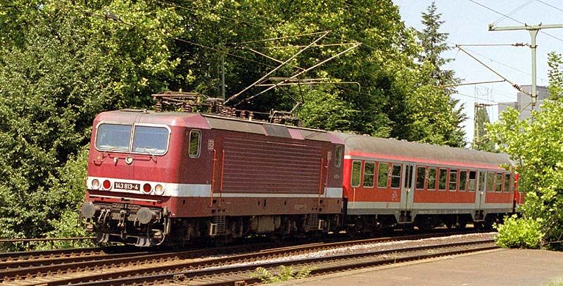 143 813 zieht am 17.06.2003 eine Regionalbahn durch Bonn-Beuel gen Koblenz.