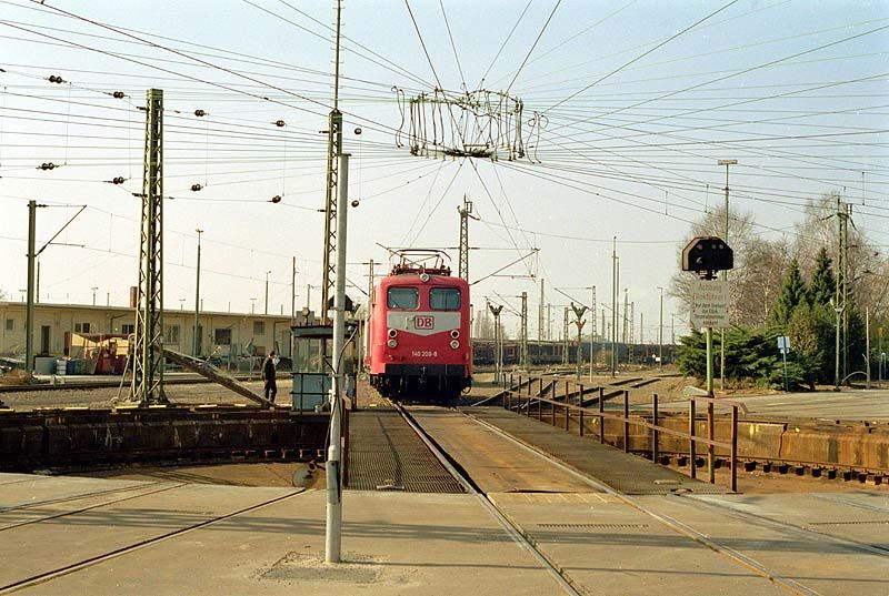 140 209 verlässt am 08.03.1997 die Drehscheibe im Bw Gremberg.