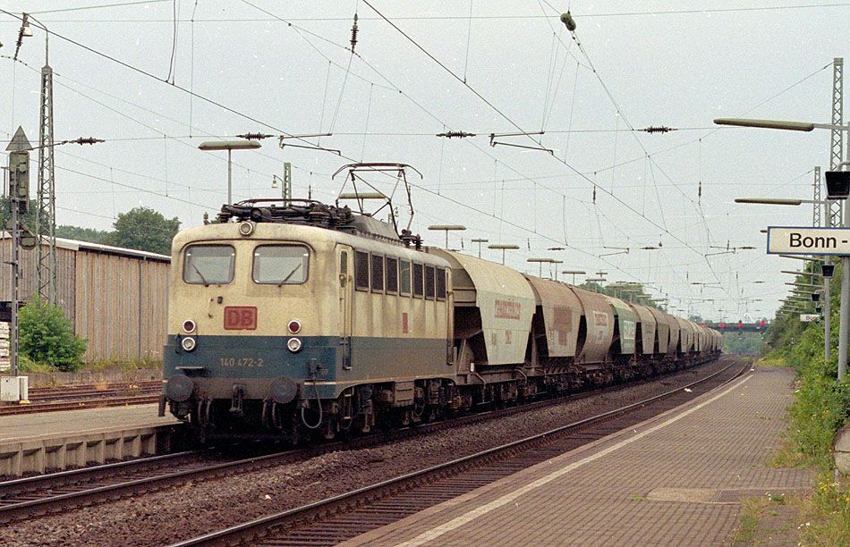 140 472 in Bonn-Beuel am 23.07.1996 unterwegs mit einem Zug in Richtung Köln.