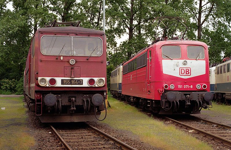 155 164 und 151 071 im Bw Gremberg am 17.06.1995.
