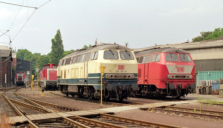 215 116 und 215 124 im Bw Köln-Deutzerfeld am 02.07.1995.