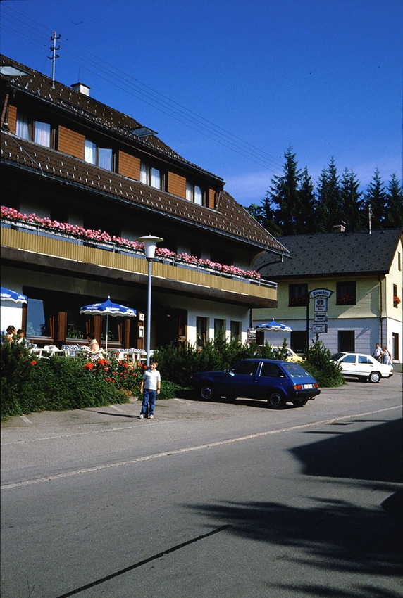Ein Jahr später präsentiert sich das Gasthaus und Hotel Hirschen mit reichhaltiger Balkonblumenbepflanzung.