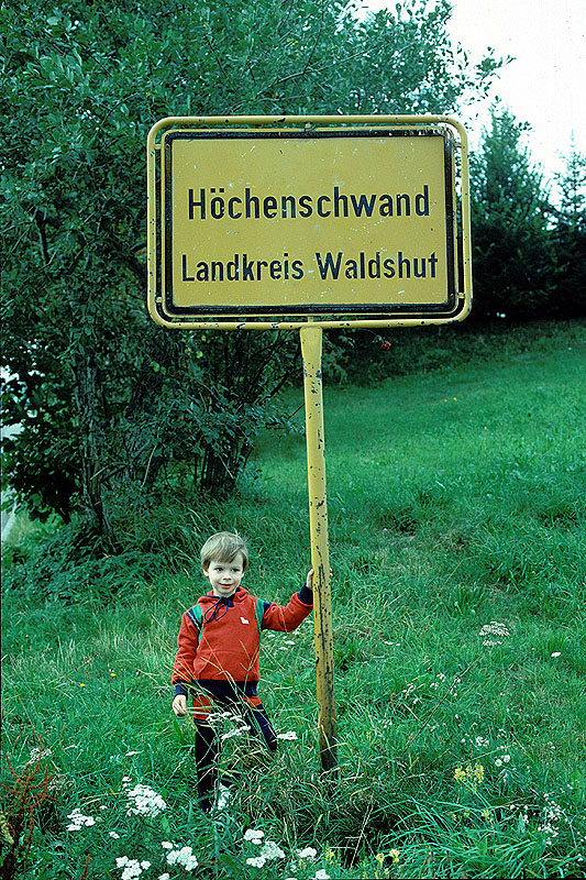 Der kleine Thomas begrüßt Sie Anfang der Achtziger am Ortsschild von Höchenschwand.