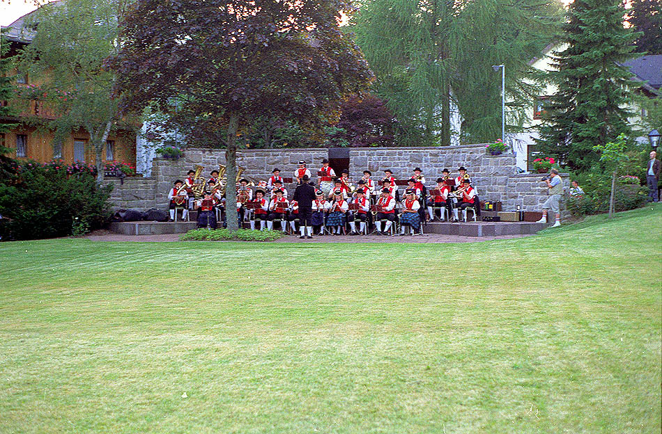 Im Kurgarten probt die Trachtenkapelle für das Sonntagskonzert.