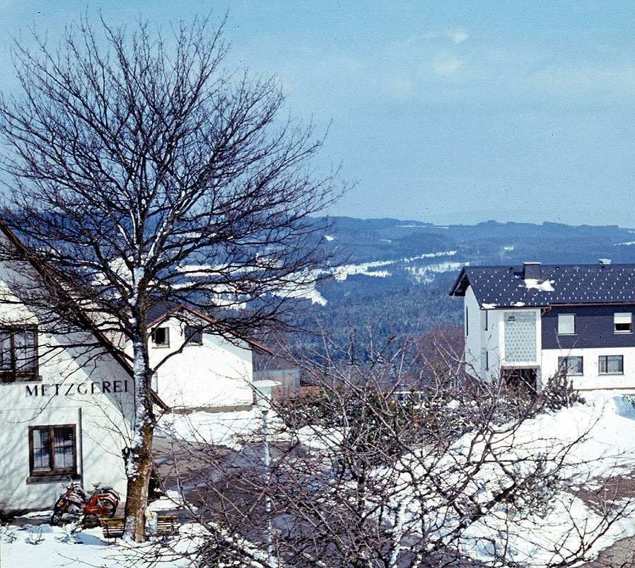Im Jahre 1975 sehen wir dann auf der linken Straßenseite den Laden von Metzgermeister Ebner,