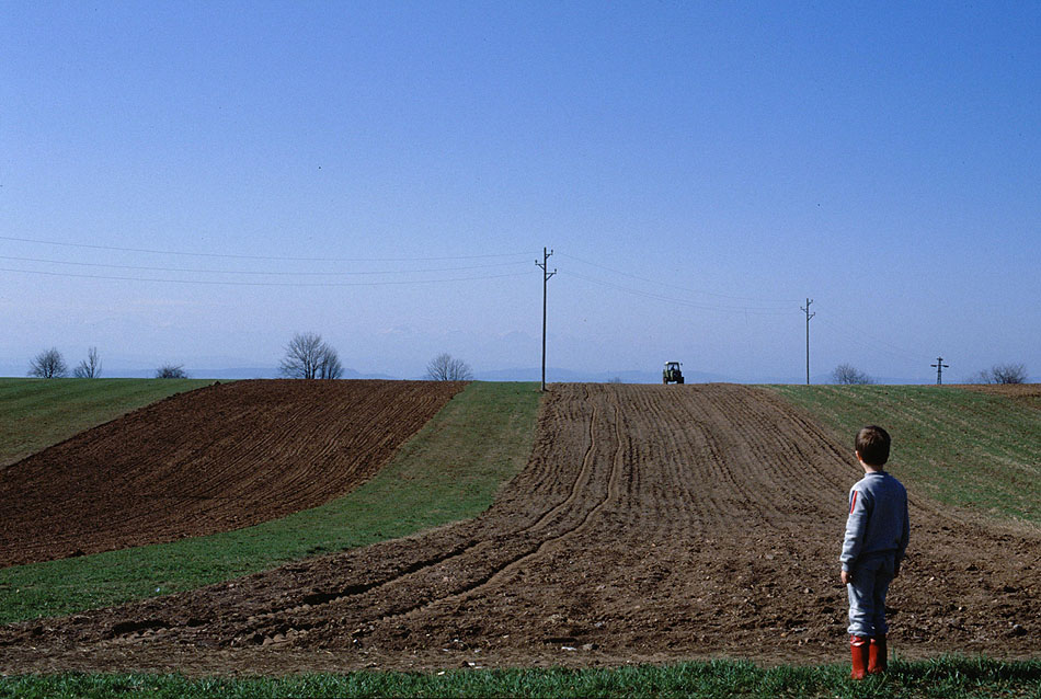 Mein kleiner Sohn Thomas wartet sehnsüchtig auf die Rückkehr des tollen Traktors.