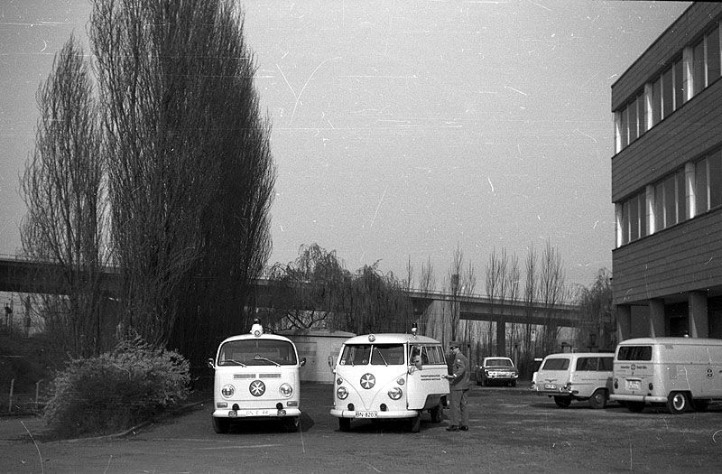 der VW Kastenwagen vom Typ T1b, ein Opel Caravan und ein Ford 17m gesellt.