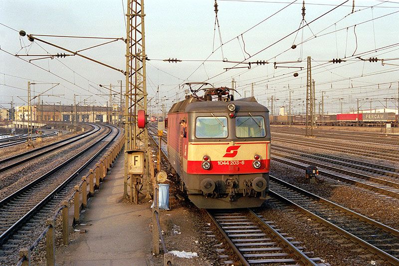 Elektrolok 1044 203 der ÖBB am 31.01.1991 in München, Donnersberger Brücke