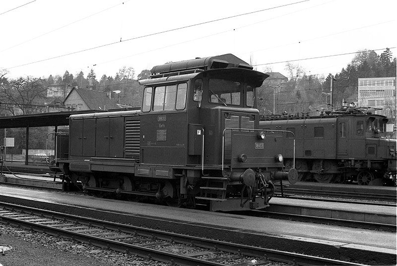 Diesel-Rangierlok Em 3-3 18833 der SBB am 02.05.1982 im Bf. Schaffhausen / Schweiz
