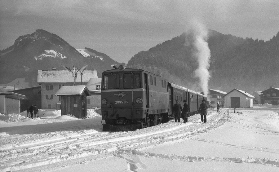Diesellok 2095.05 der ÖBB am 07.01.1978 in Bezau / Österreich