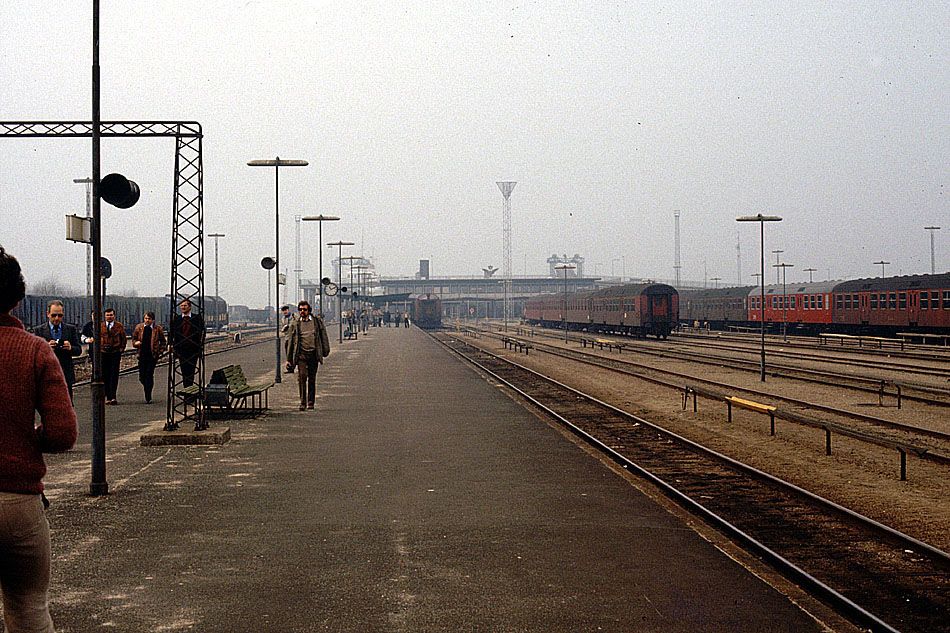 DSB Bahnhof Rödby-Faerge / Dänemark am 03.04.1982