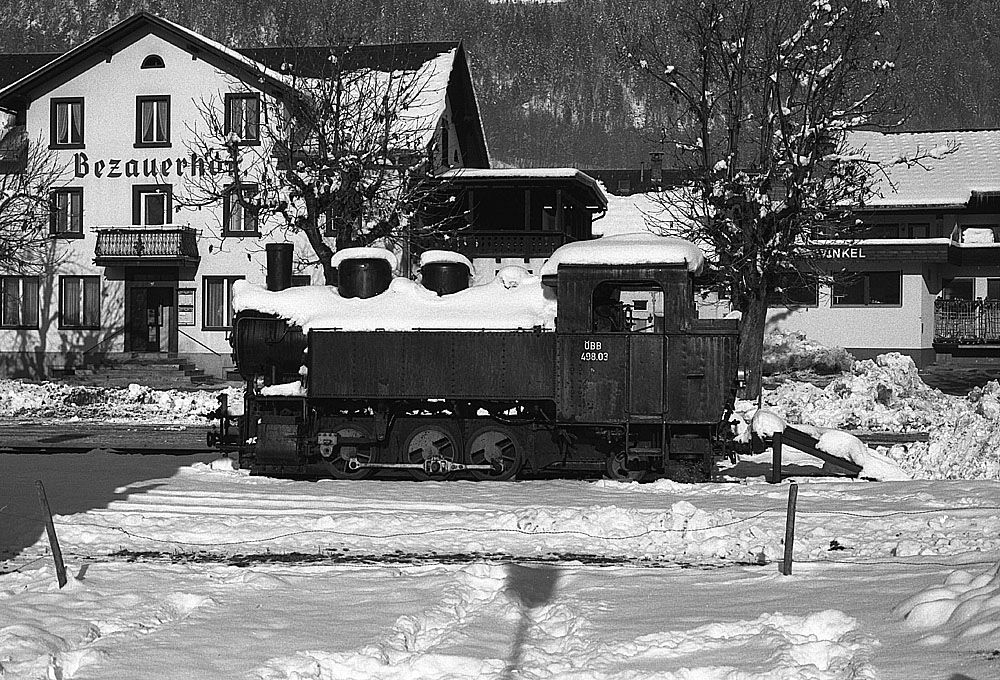 Dampflok 498.03 am 02.12.1978 in Bezau / Österreich