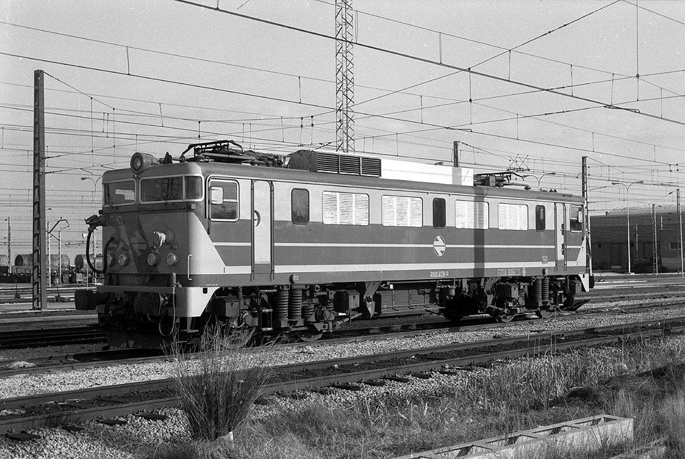 Elektrolok 279 276 (Mitsubishi-Lok (1983)) am 24.02.1984 im Depot Madrid-Fuencarv / Spanien