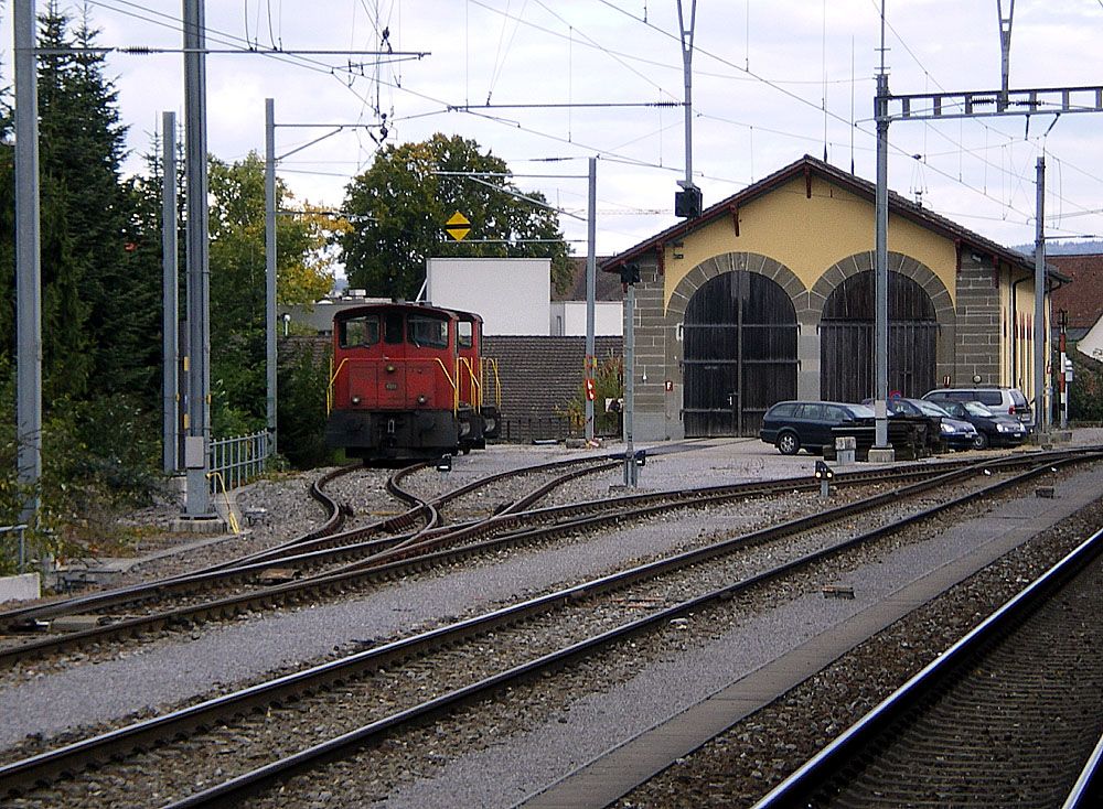 Vor der Lokremise in Frauenfeld / Schweiz warten am 02.10.2008 zwei Rangierloks auf den nächsten Einsatz