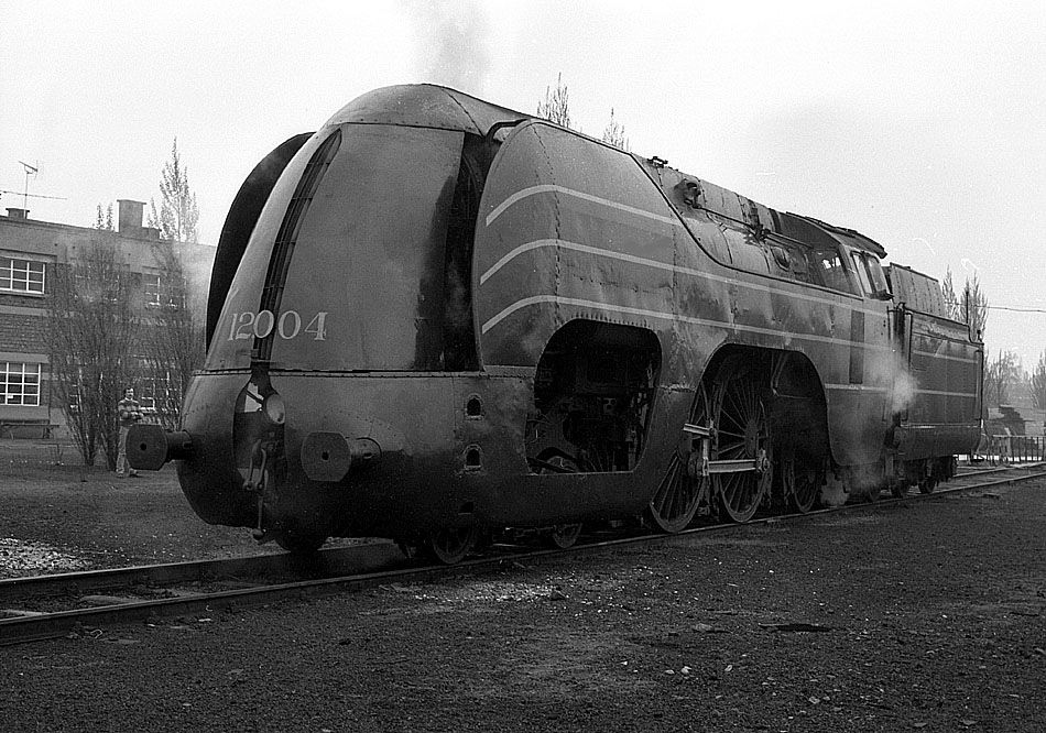 Dampflok 12.004 im Mai 1985 im Bw Löwen / Belgien unter Dampf
