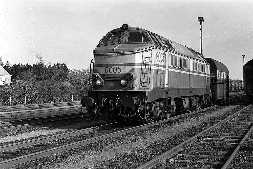 Diesellok 6005 am 09.05.1986 in Terneuzen / Belgien. Sie ist die einzige Lok der BR 60 mit elektrischer Wagenheizung